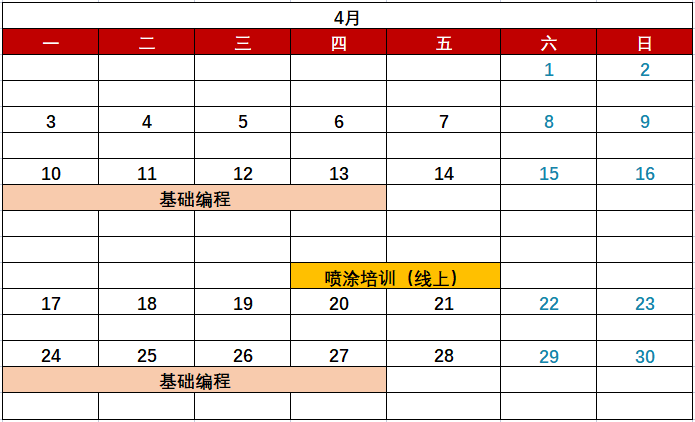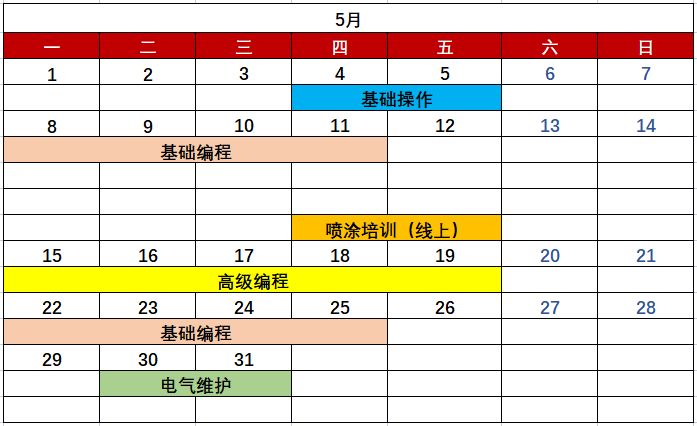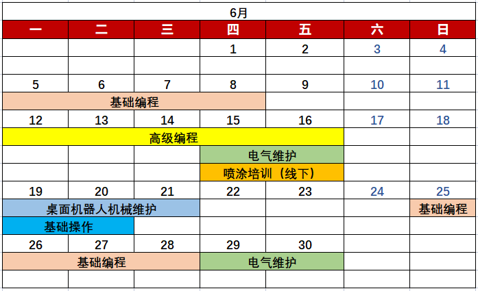 EFORT机器人学院二季度课程表